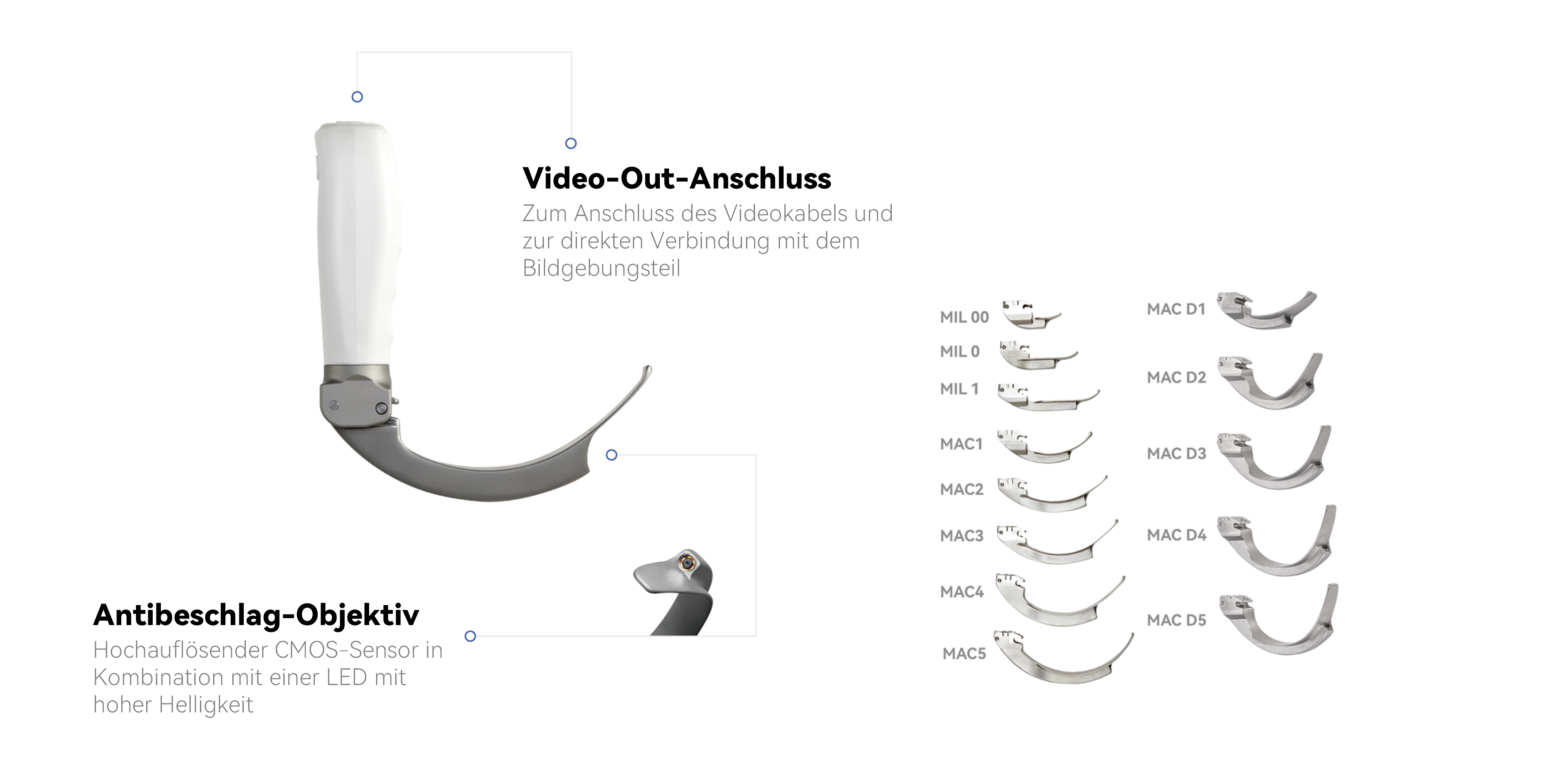 Mit seinem modularen Design, einem abnehmbaren Griff und 13 wiederverwendbaren Spatelmodellen eignen sich die Edelstahlspatel besonders für den Einsatz in der Notfall- und Intensivmedizin, wo unterschiedliche Patiententypen versorgt werden müssen. Der medizinische 316L-Edelstahl verleiht dem Spatel eine außergewöhnliche Festigkeit und hohe Korrosionsbeständigkeit.