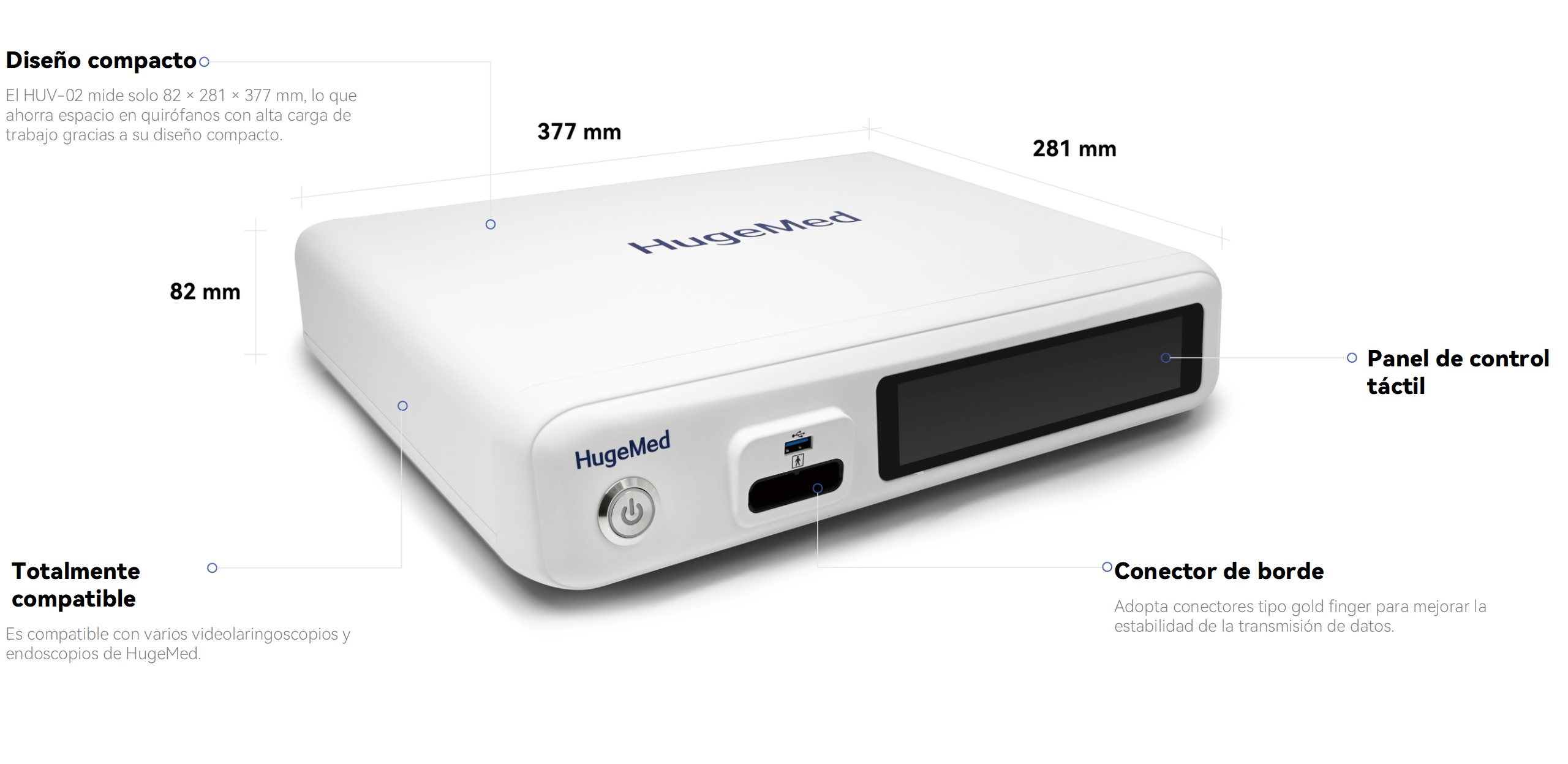 El procesador de imágenes HUV-02 captura y procesa imágenes de endoscopios, proporcionando salida a pantallas externas. Ofrece imágenes claras y de alta calidad, junto con una experiencia de operación intuitiva para procedimientos quirúrgicos.