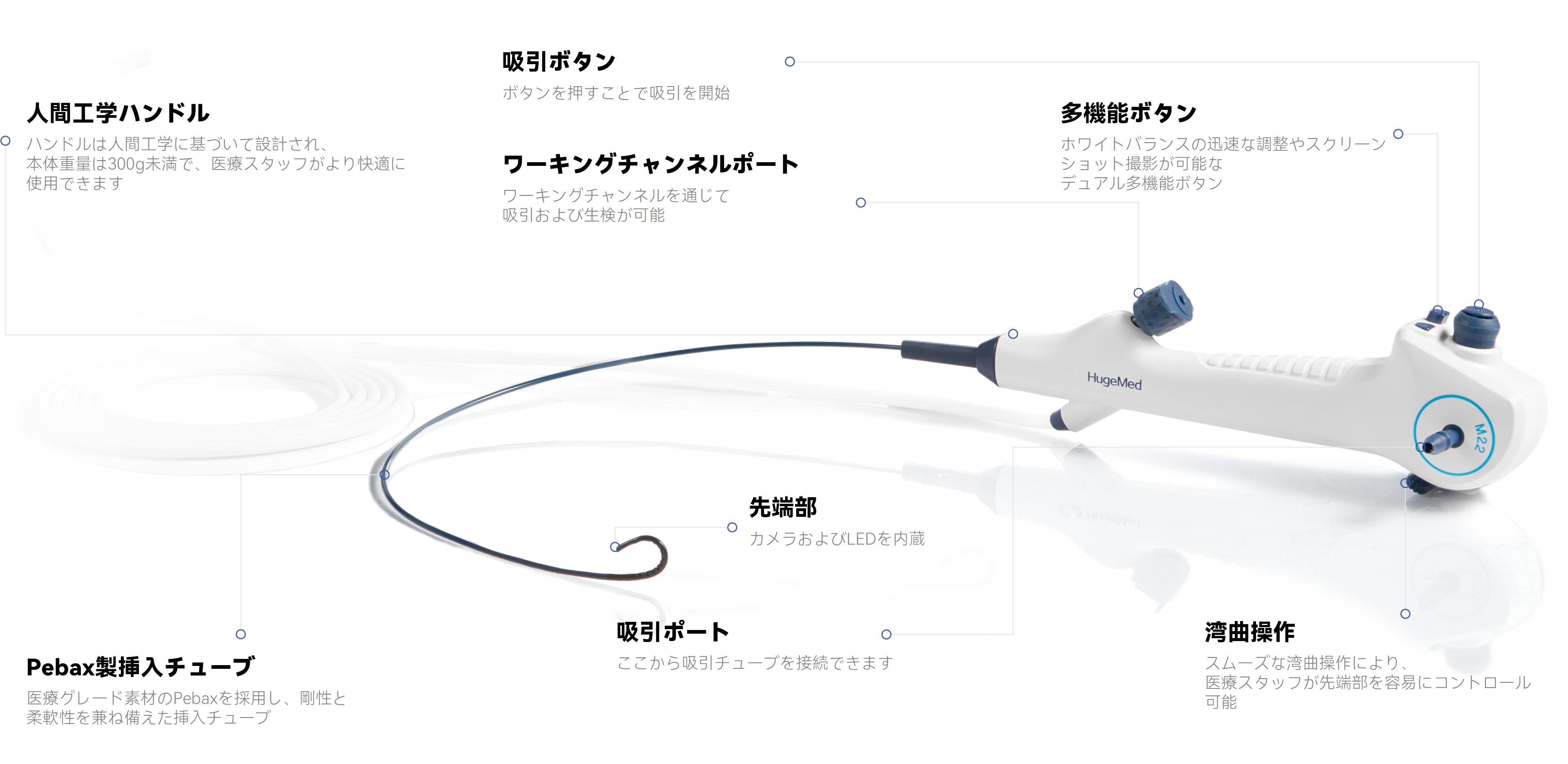 RH シリーズは 9 モデルをラインアップしており、最も細い診断用モデルは 2.2mm、治療用モデルは 3.1mm と、患者にとってより負担の少ない快適な検査体験を提供します。