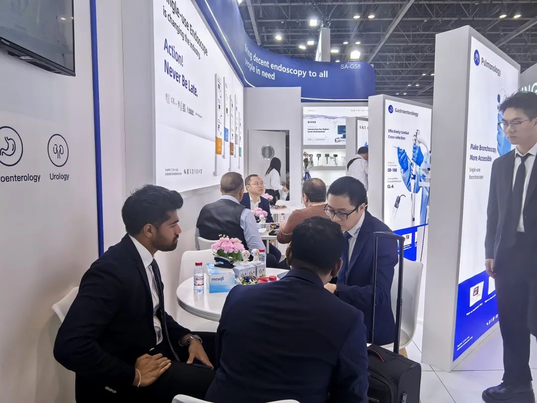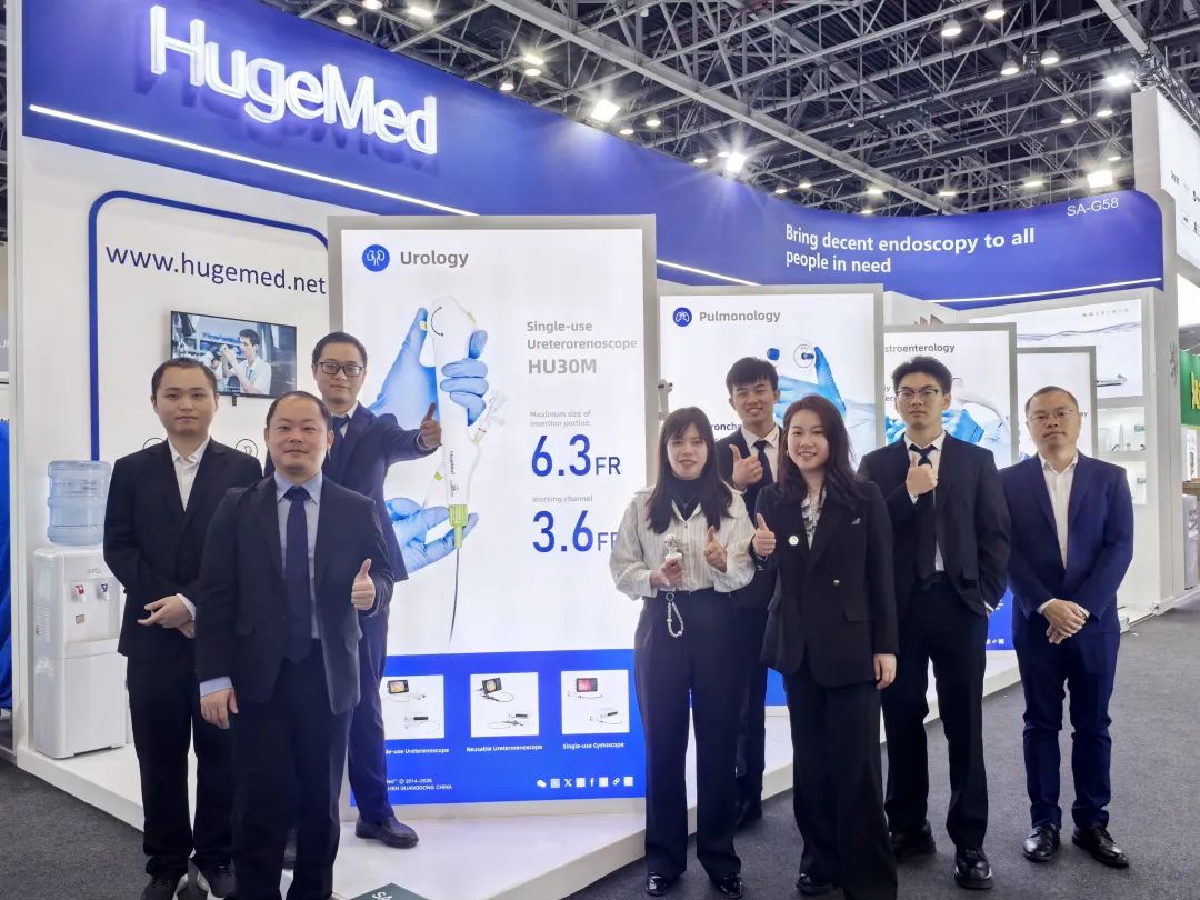 在市场表现方面,深圳宏济医疗的一次性输尿管软镜在阿联酋、土耳其等国家皆取得了不俗的市场份额;6.3Fr软镜赢得了如 Prof. Dr. Mohsen Elmekresh、Dr. Saeed Bin Hamri、Dr. Kemal Sarica等众多大咖的高度赞誉;此外,我司产品于去年成功进入沙特卫生部下属采购公司NUPCO,未来将迎来业绩的爆发式增长。本次展会上,深圳宏济医疗以泌尿外科、气道管理为重点的六大产线成为全场焦点,吸引了大量专业观众的目光。从先进的内窥镜设备到个性化的配套诊疗解决方案,我们全方位展示了在泌尿疾病诊疗的深厚实力。