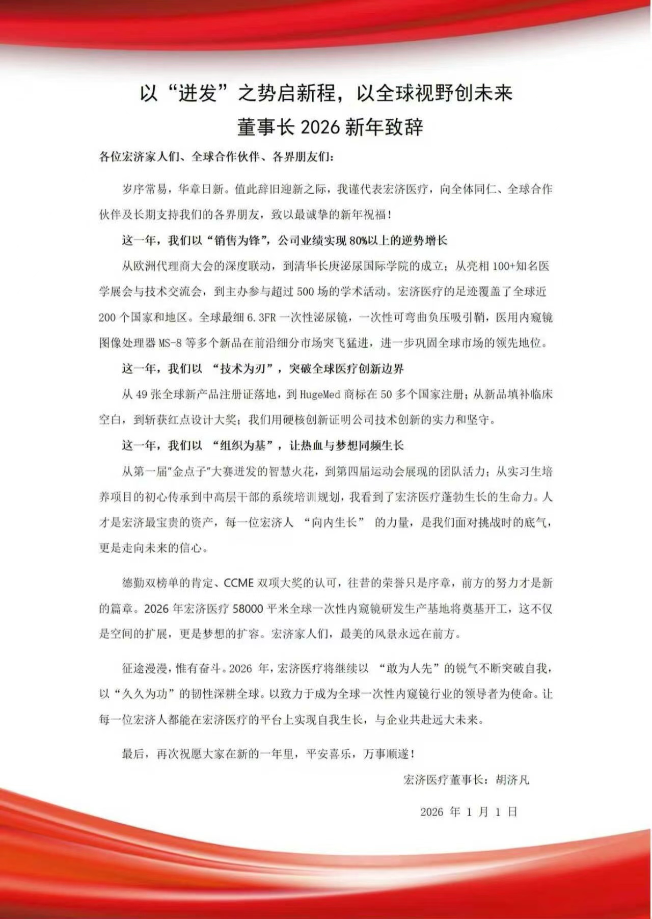 宏济医疗董事长2026新年致辞|以"迸发"之势启新程,以全球视野创未来