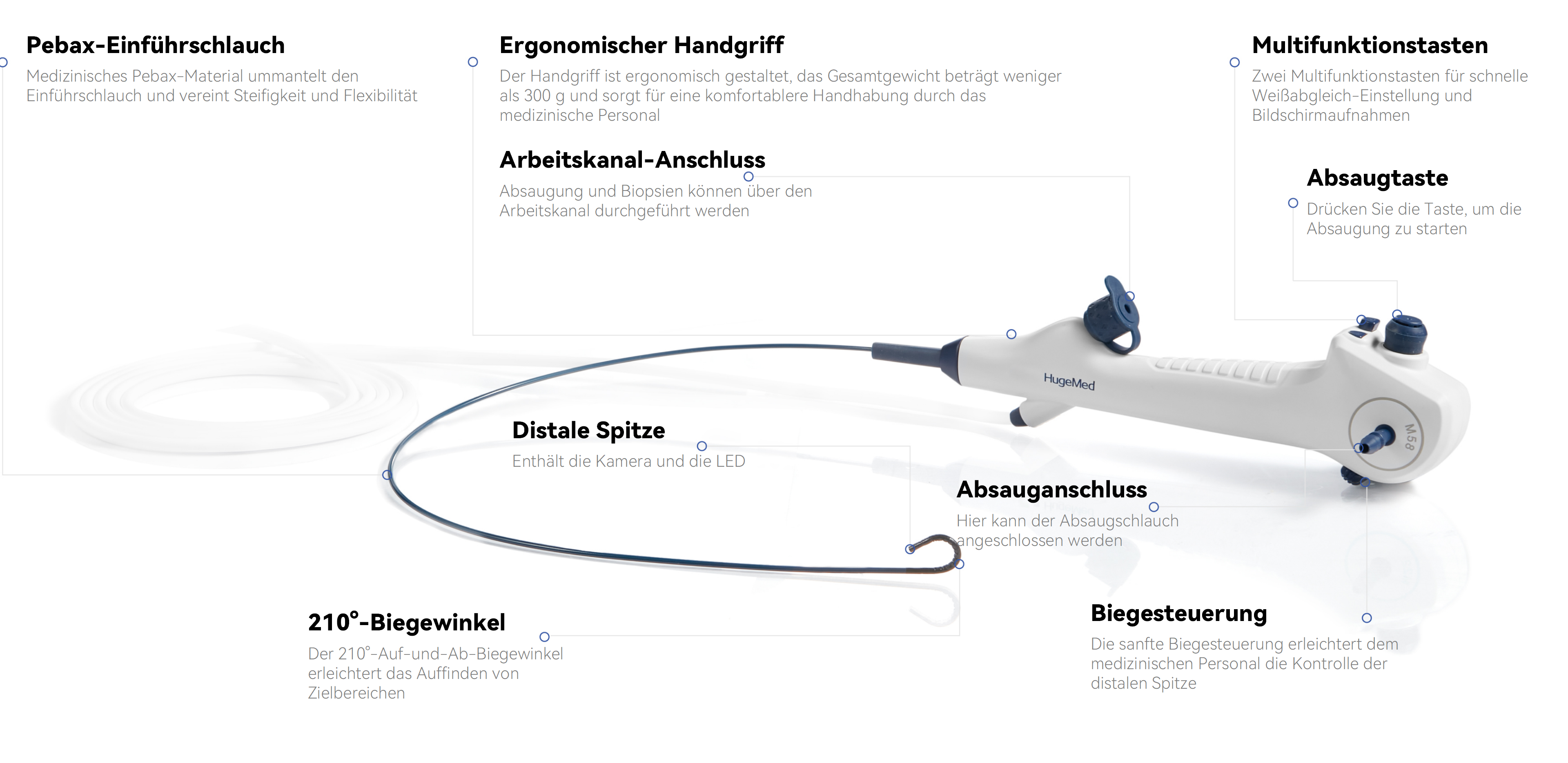 Das Einmal-Bronchoskop wurde umfassend weiterentwickelt, um die Produktleistung zu steigern und die Benutzererfahrung zu optimieren. In Kombination mit dem medizinischen Bildprozessor MS-8 liefert es klare intraoperative Bilder und gewährleistet einen effizienten klinischen Workflow.