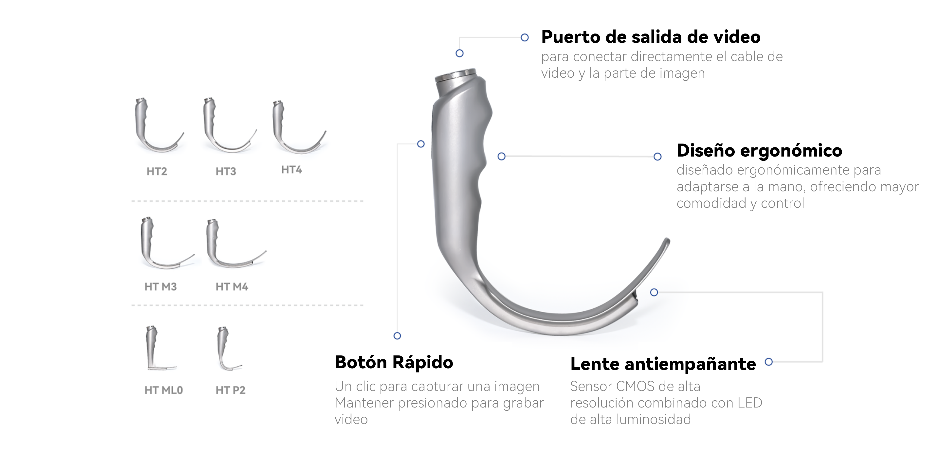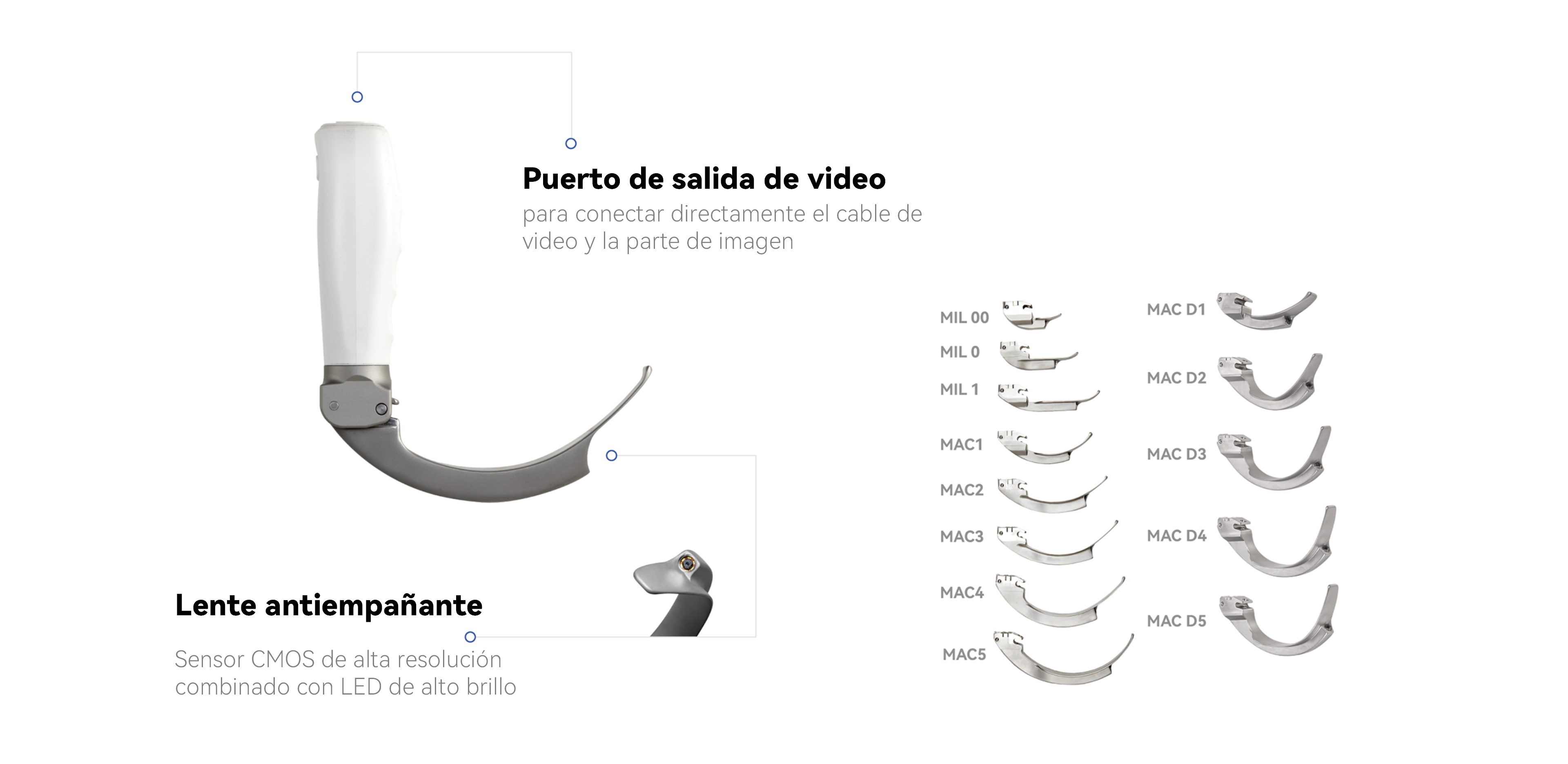 El VL4REX funciona como un Videolaringoscopio mediante diversas combinaciones de la parte de imagen, cables, mangos desmontables y hojas reutilizables de laringoscopio. Este producto es ampliamente aplicable en departamentos que requieren intubación, como salas de emergencia, quirófanos y UCI. Su portabilidad y la amplia variedad de hojas seleccionables ofrecen conveniencia en diversos escenarios.